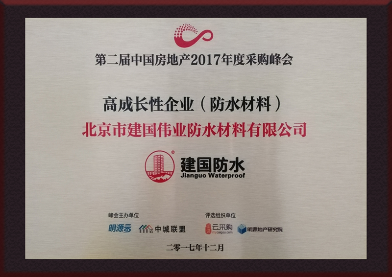 2017年12月7日,由中國(guó)建筑防水協(xié)會(huì)主辦的《全國(guó)建筑防水行業(yè)質(zhì)量提升工作大會(huì)暨2017年建筑防水行業(yè)年會(huì)》在??谡秸匍_(kāi)。本次會(huì)議對(duì)2017年防水行業(yè)取得的成績(jī)和質(zhì)量提升方面面對(duì)的問(wèn)題、挑戰(zhàn)進(jìn)行了詳細(xì)解讀,對(duì)質(zhì)量提升提出了新的要求和建議,并對(duì)質(zhì)量提升及科技進(jìn)步企業(yè)進(jìn)行表彰。建國(guó)偉業(yè)集團(tuán)榮獲“2016-2017年建筑防水行業(yè)先進(jìn)企業(yè)”稱號(hào)。